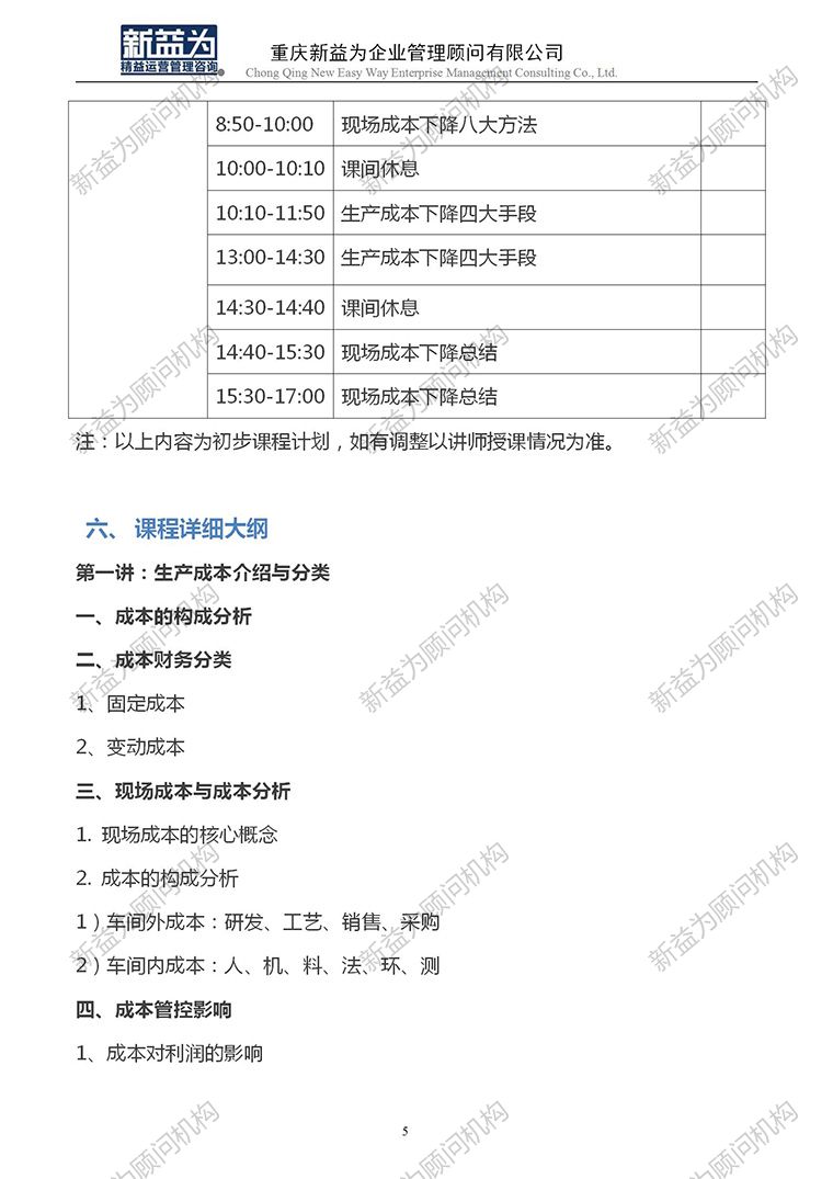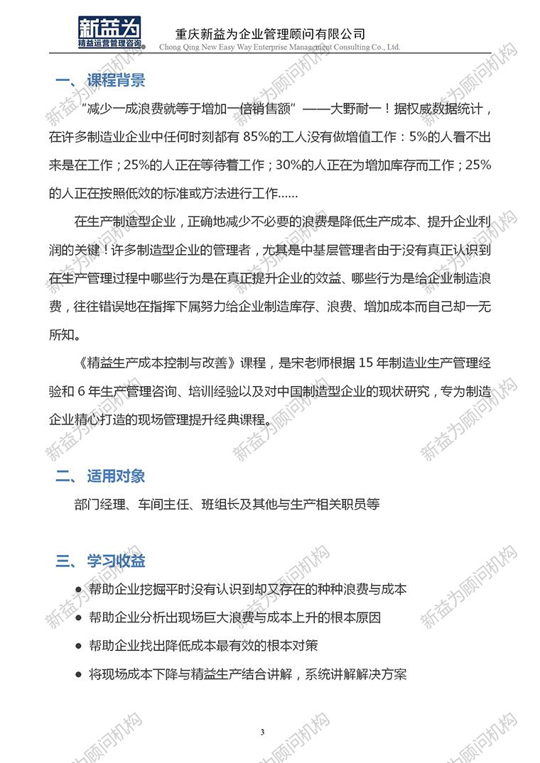 重慶2023.03 精益生產(chǎn)成本控制與改善訓(xùn)練營